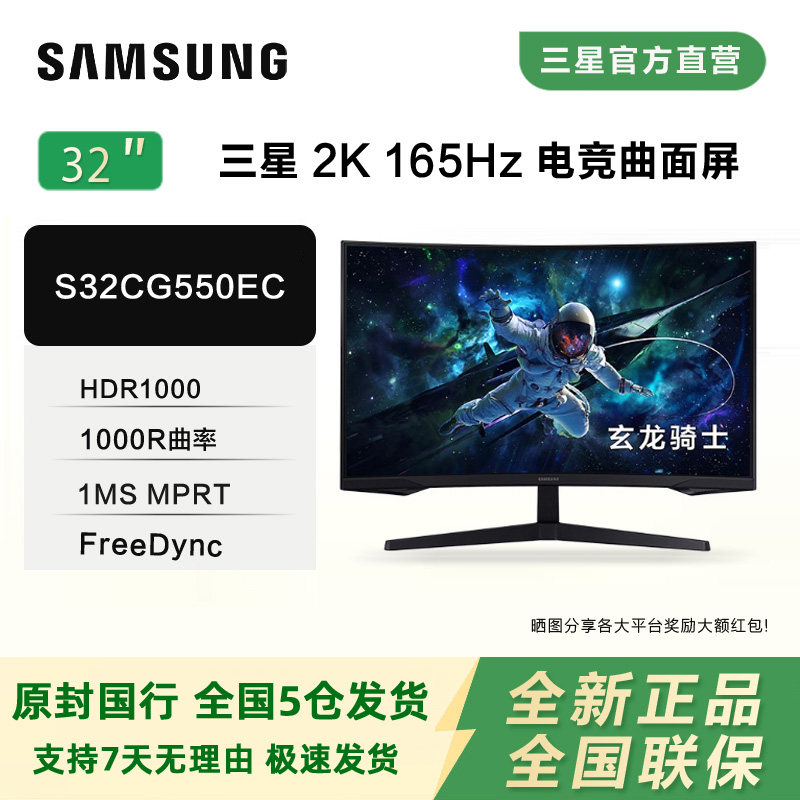 三星32英寸S32CG550EB电竞2K165HZ曲面显示器HDR电脑液晶高清曲屏