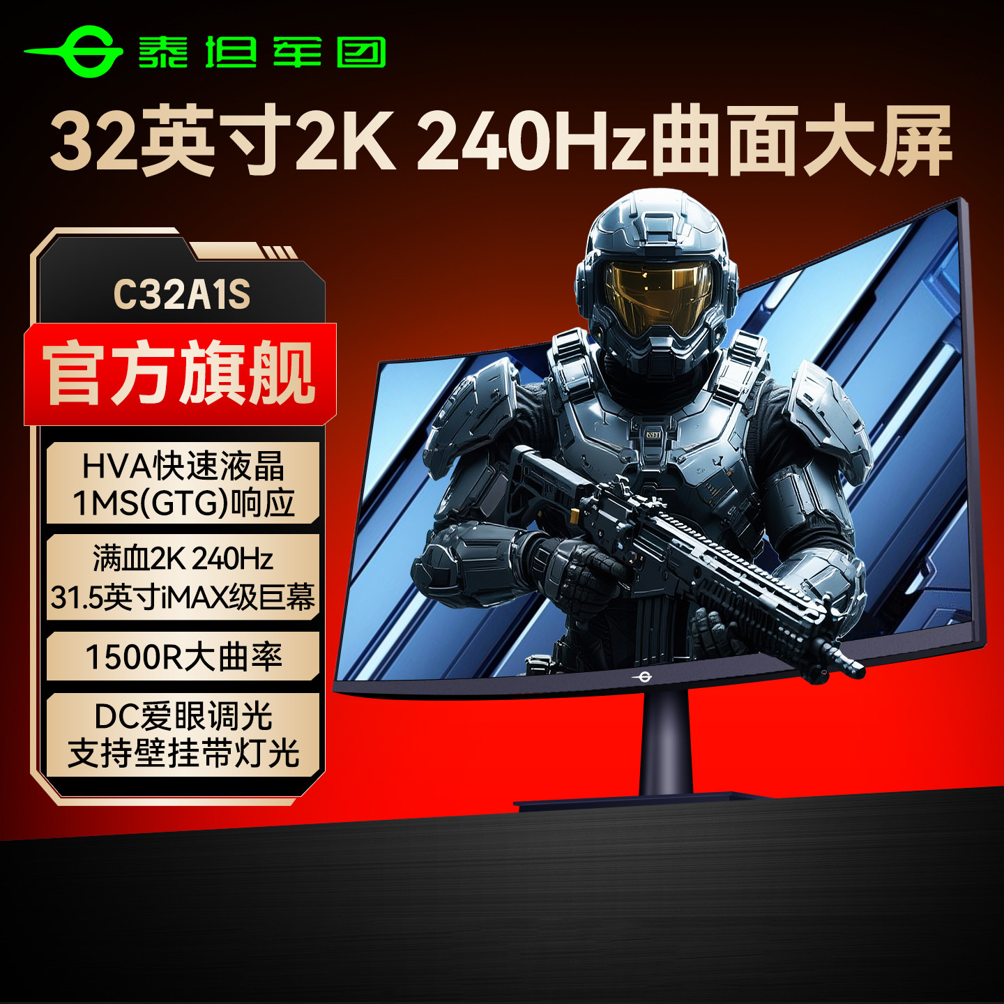 泰坦军团32英寸大屏2K240Hz显示器HVA曲面电脑曲屏180Hz屏C32A1S
