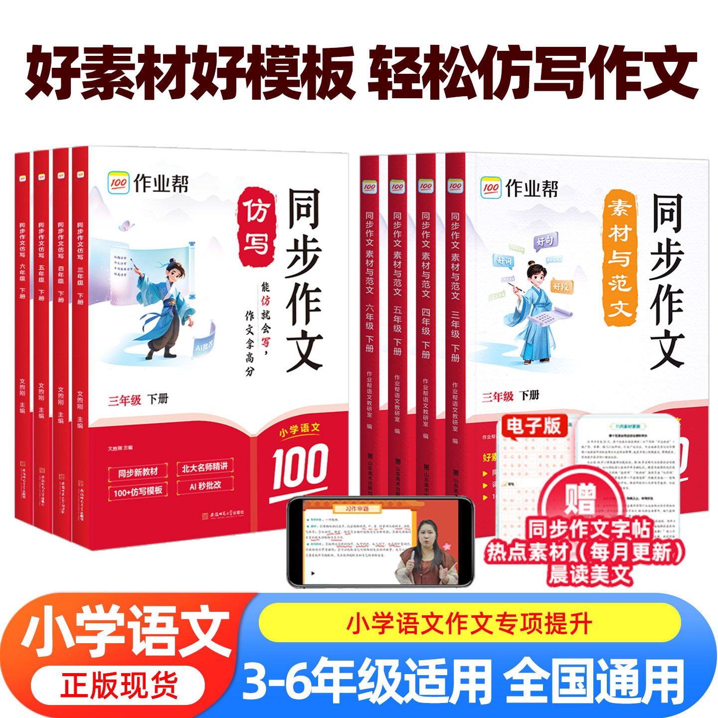 2026春版一本同步作文100篇小学生同步作文三年级四五六年级上册下满分作文小学生优秀作文仿写语文作文素材方法写作手册同步阅读