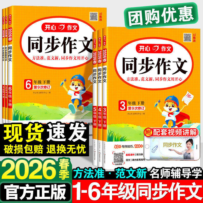 2026春开心同步作文三年级下册四年级五年级六年级人教版上册小学语文阅读理解专项训练优秀满分作文小学生写作素材书答题模板一二