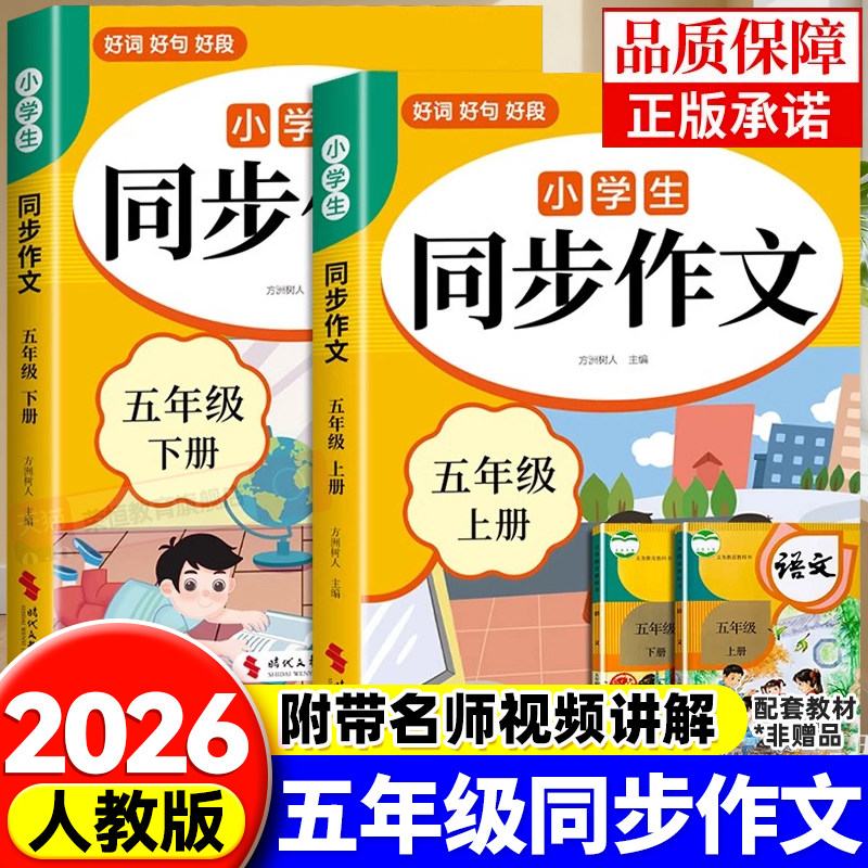 【2026新版】五年级上下册同步作文人教版小学作文书小学生黄冈优秀作文大全5年级范文仿写素材全解语文满分作文下册写作全程指导