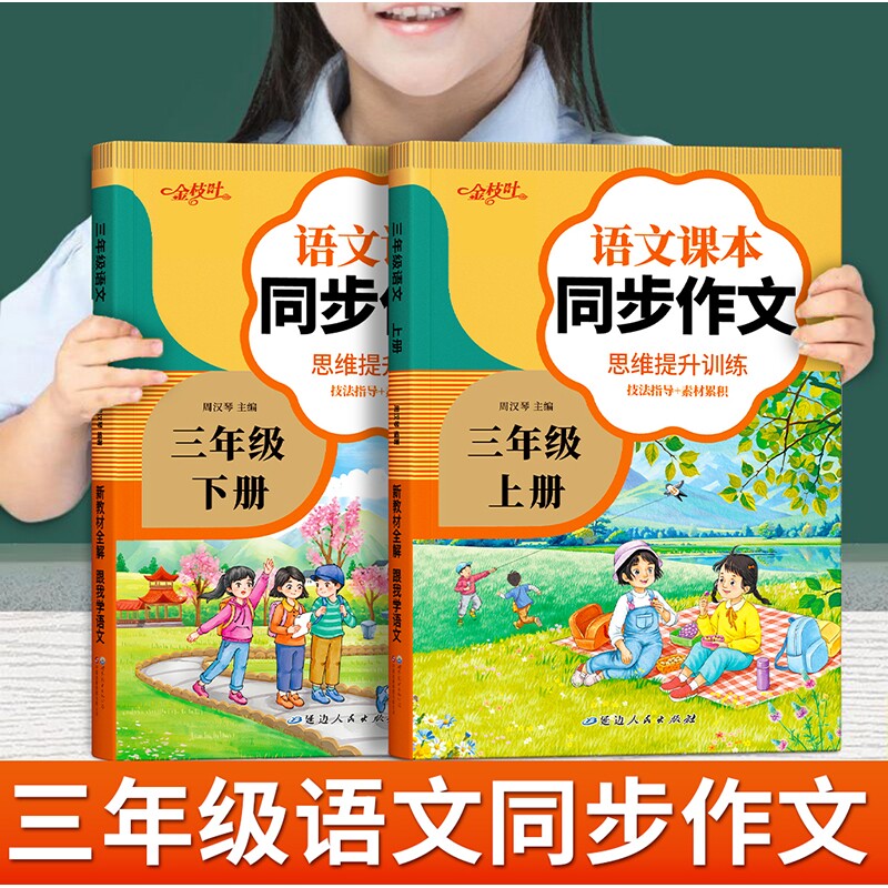 【2026新版】三年级上下册同步作文人教版小学作文书小学生黄冈优秀作文大全3年级范文仿写素材全解语文满分作文下册写作全程指导