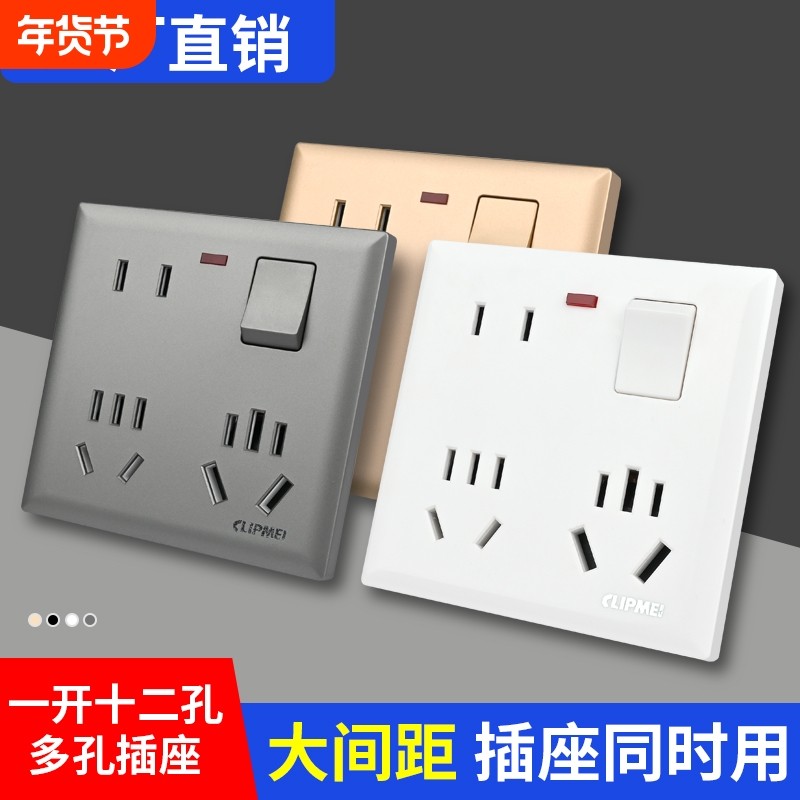 大功率12孔插座16A10a混合多功能86型墙壁开关一开八孔电源空调暗