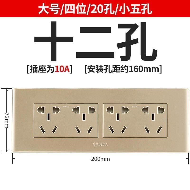 暗装118型开关插座面板香槟金12孔插座墙壁4位二十20孔15孔插座