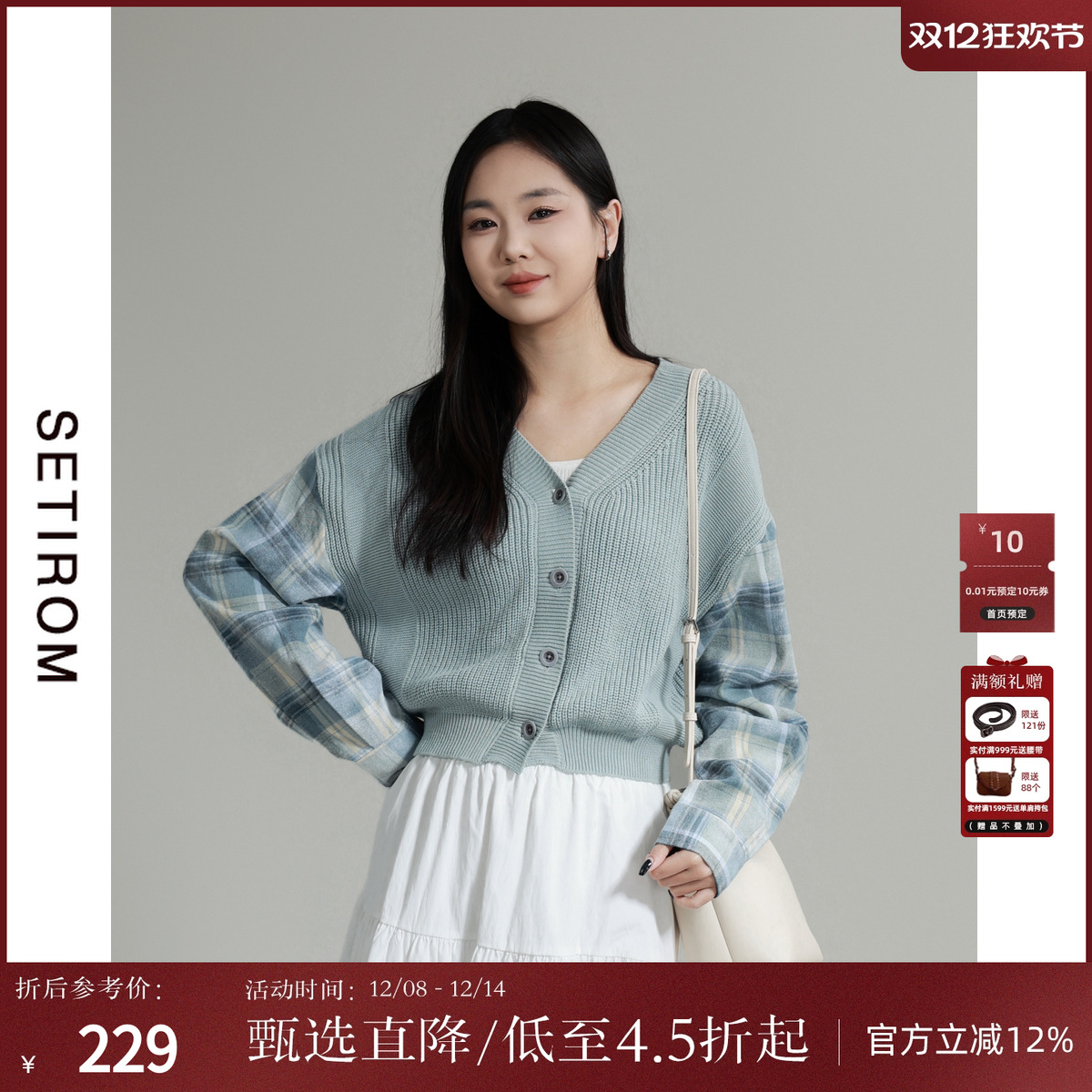西町村屋文艺拼接设计开衫女装春季新款休闲长袖针织衫HA9213005