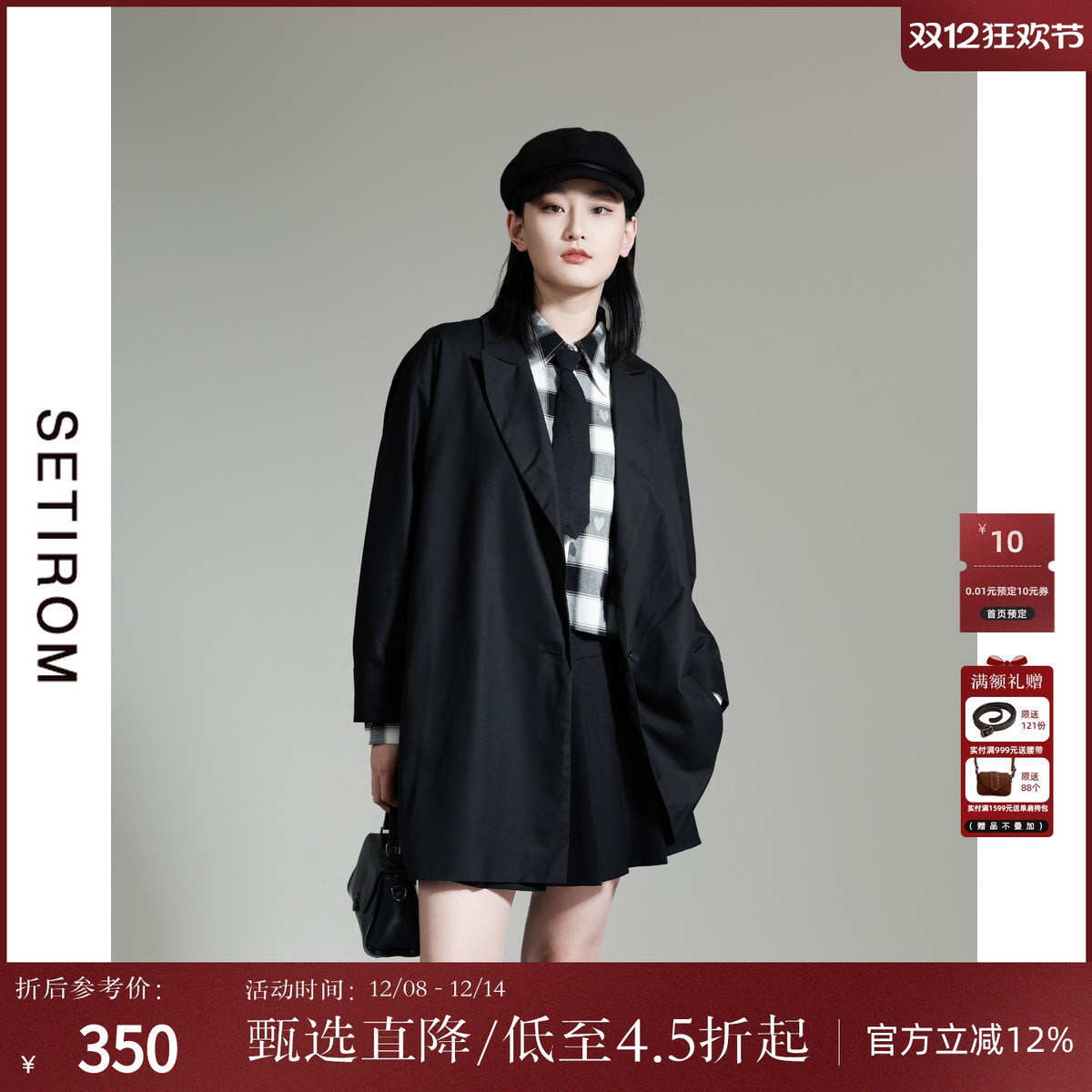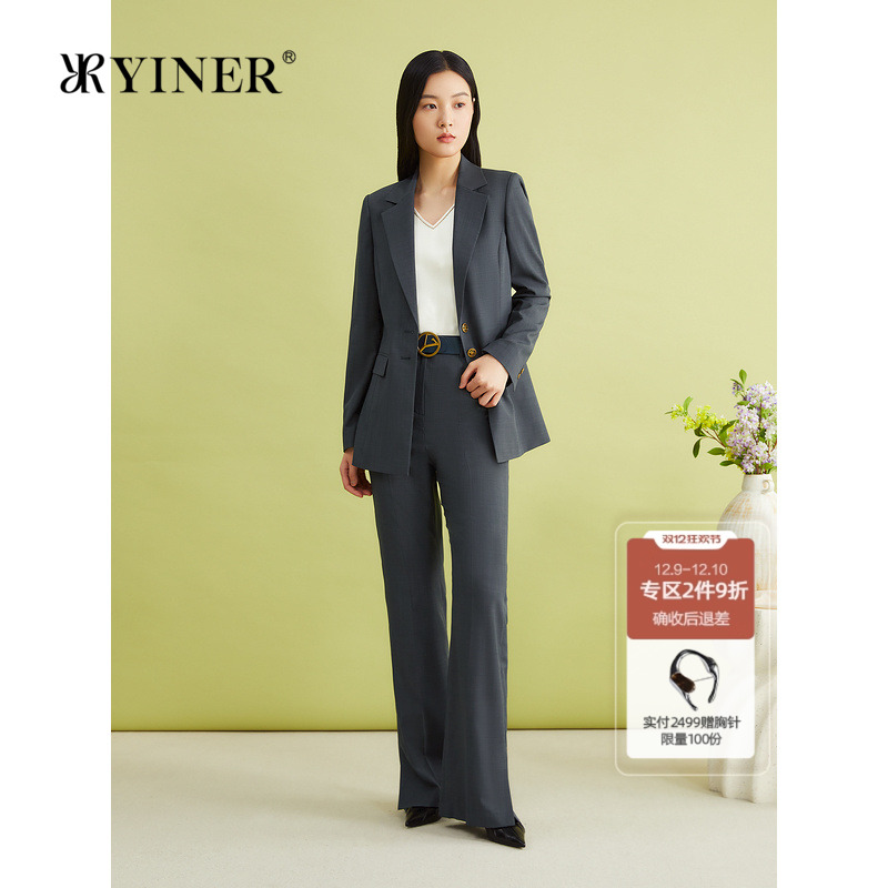【商场同款】IMM尹默女装春季100%美利奴羊毛深灰色收腰西装外套