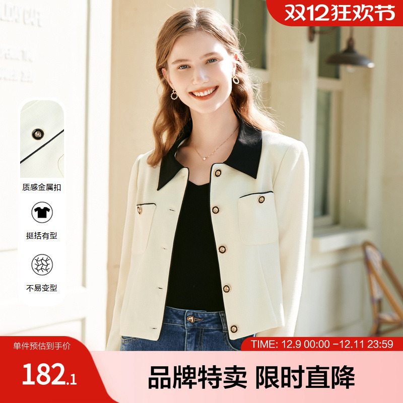 【商场同款】IMM尹默女装春季羊毛混纺简约正肩品质感小香风外套