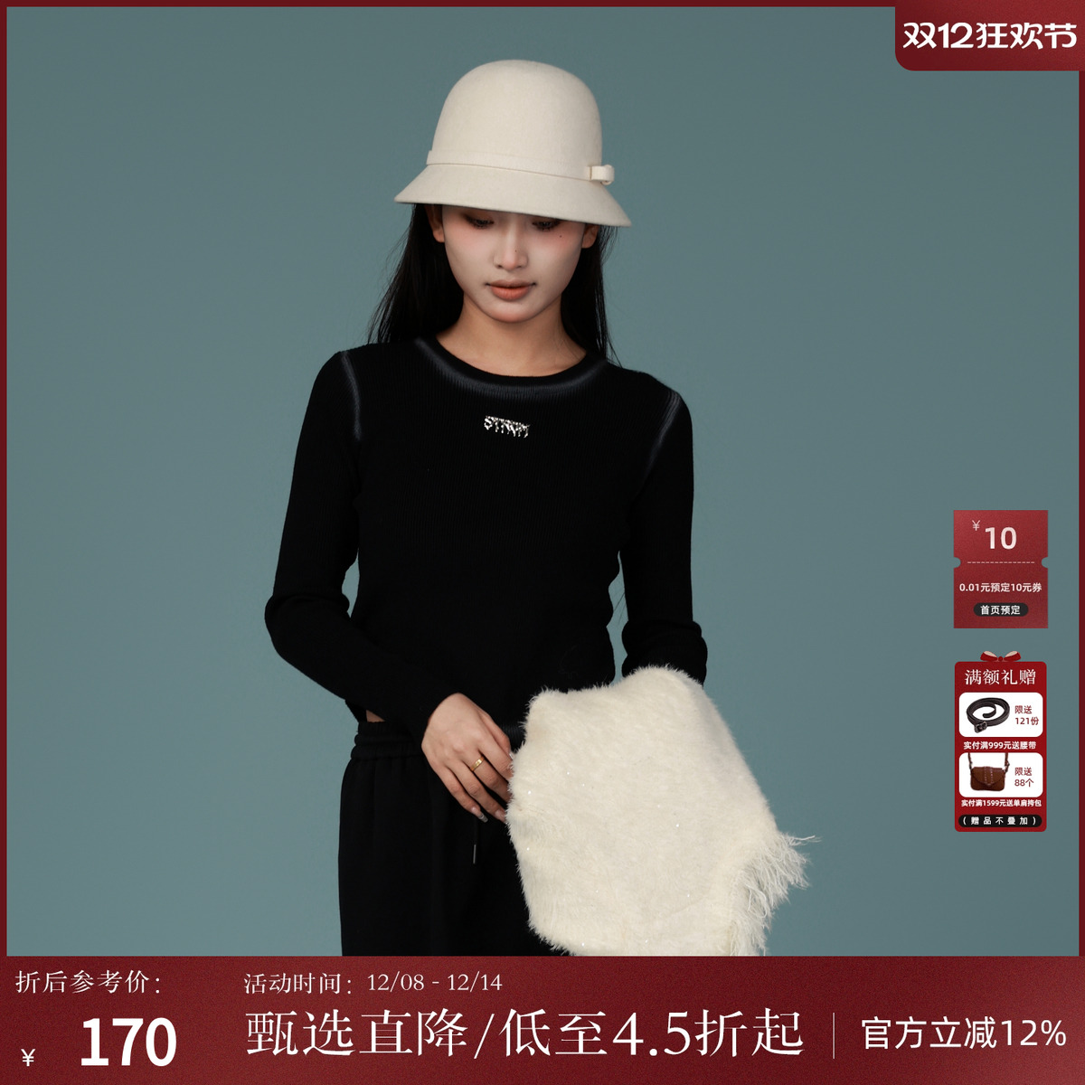EXCEPTION例外女装春季毛针织衫绵羊毛圆领收腰套头毛衣