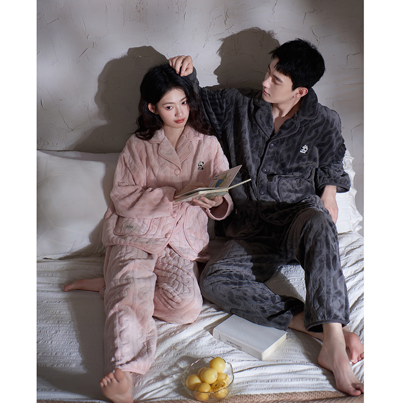 曼系冬季珊瑚绒情侣睡衣韩版宽松大码女家居服秋冬保暖加绒男套装