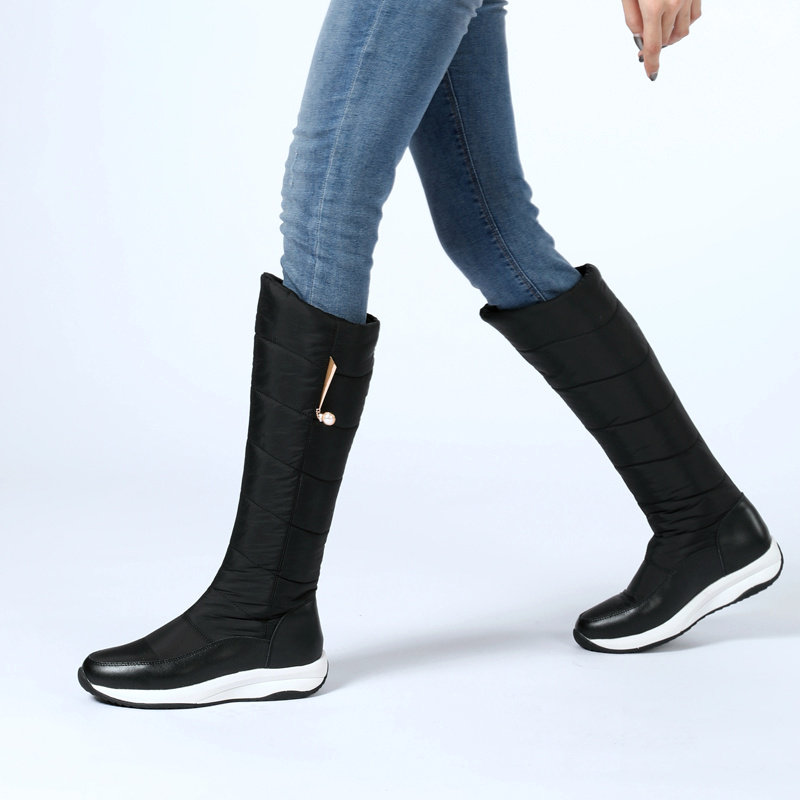 2025冬季牛真皮雪地靴女式高筒棉靴防水羽绒保暖厚毛靴轻便女靴子