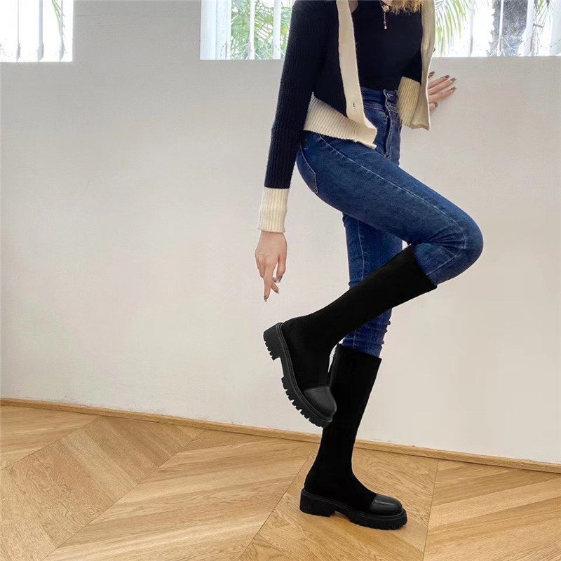 睿登靴子女弹力袜子骑士靴网面休闲短靴不过膝瘦瘦靴女靴冬季新款