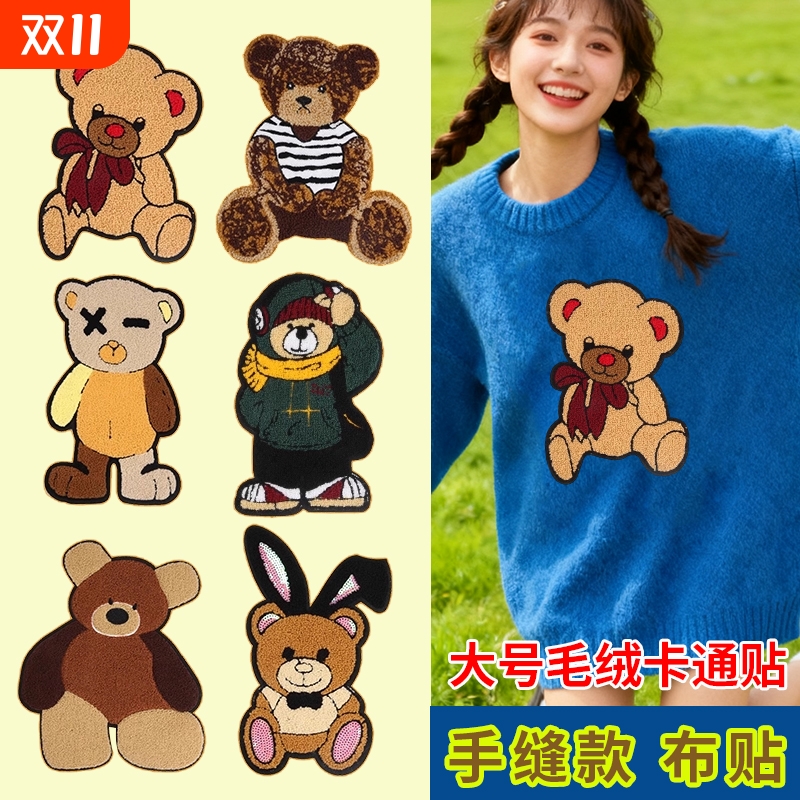 衣服绒布补丁贴自粘免缝短袖T恤卫衣破洞无痕补衣贴卡通字母布贴