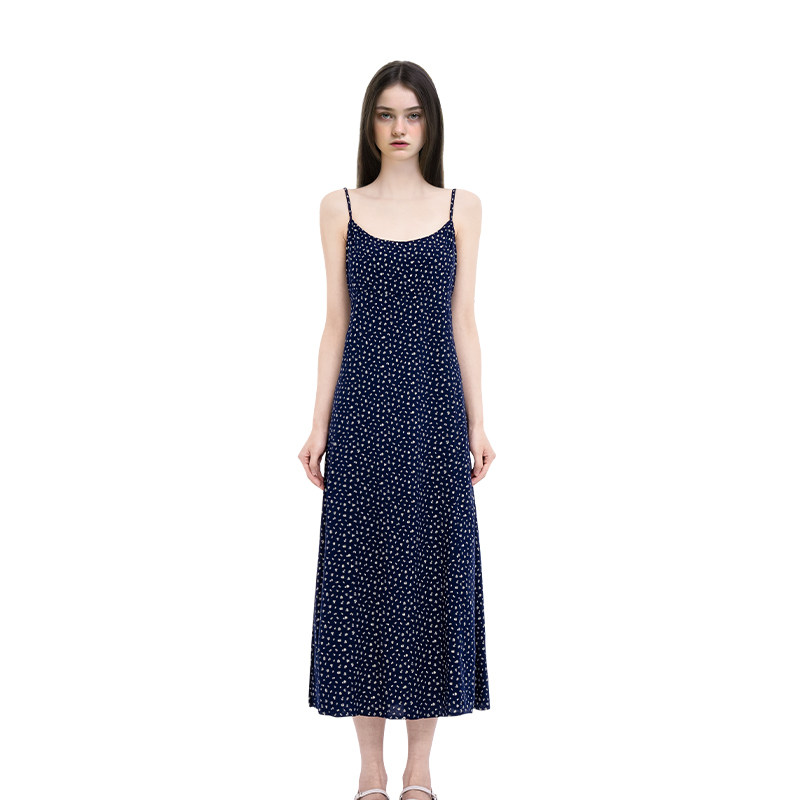 BM碎花吊带蓝色连衣裙背心收腰裙子女气质显瘦长裙bm官方旗舰店