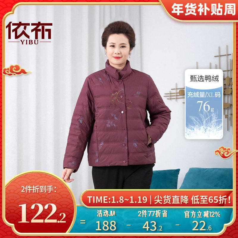 依佈中老年女装2025新款刺绣羽绒服秋冬薄款秋羽绒外套妈妈装上衣