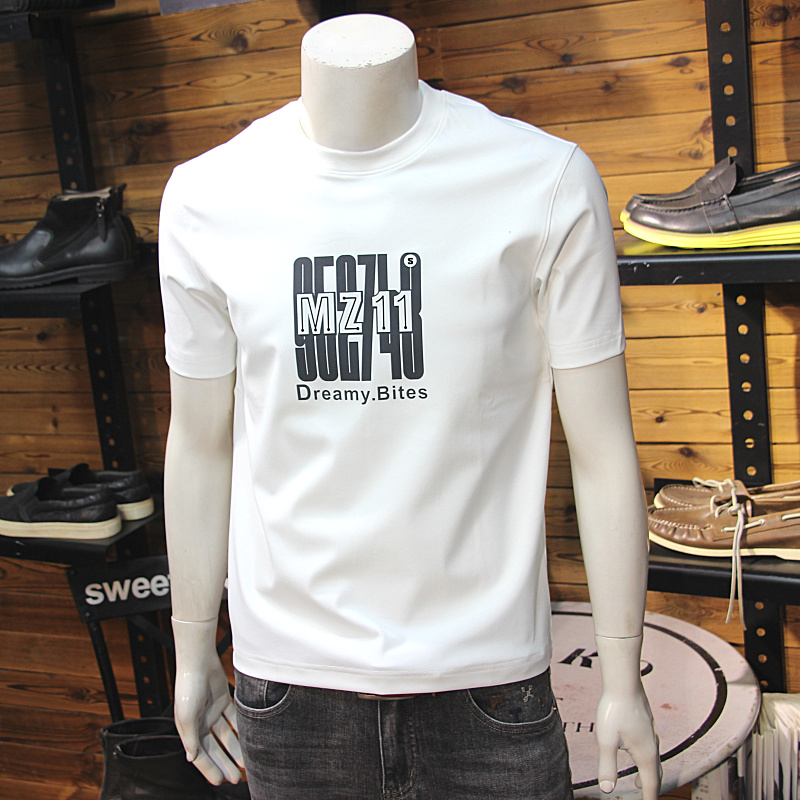 民族风印花男加厚短袖秋冬圆领青年修身打底半袖莫代尔厚料男T恤
