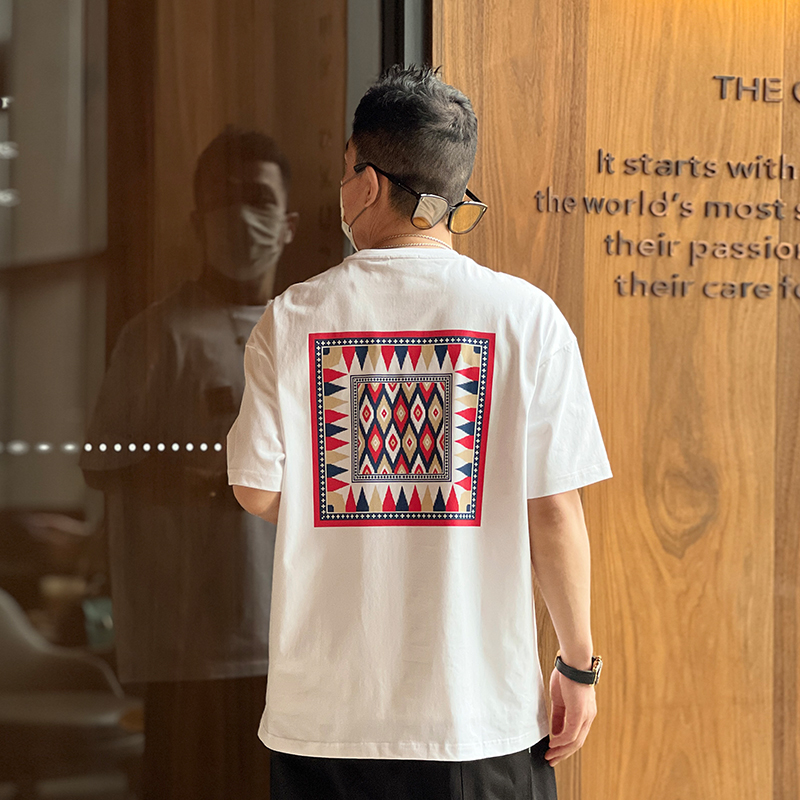 民族风纯棉短袖男士潮牌美式时尚印花半袖体恤潮流百搭修身T恤男