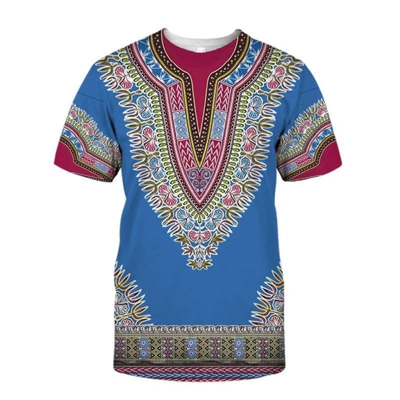 2021新款 非洲民族风格 3D印花短袖 男生休闲套头圆领T恤衫