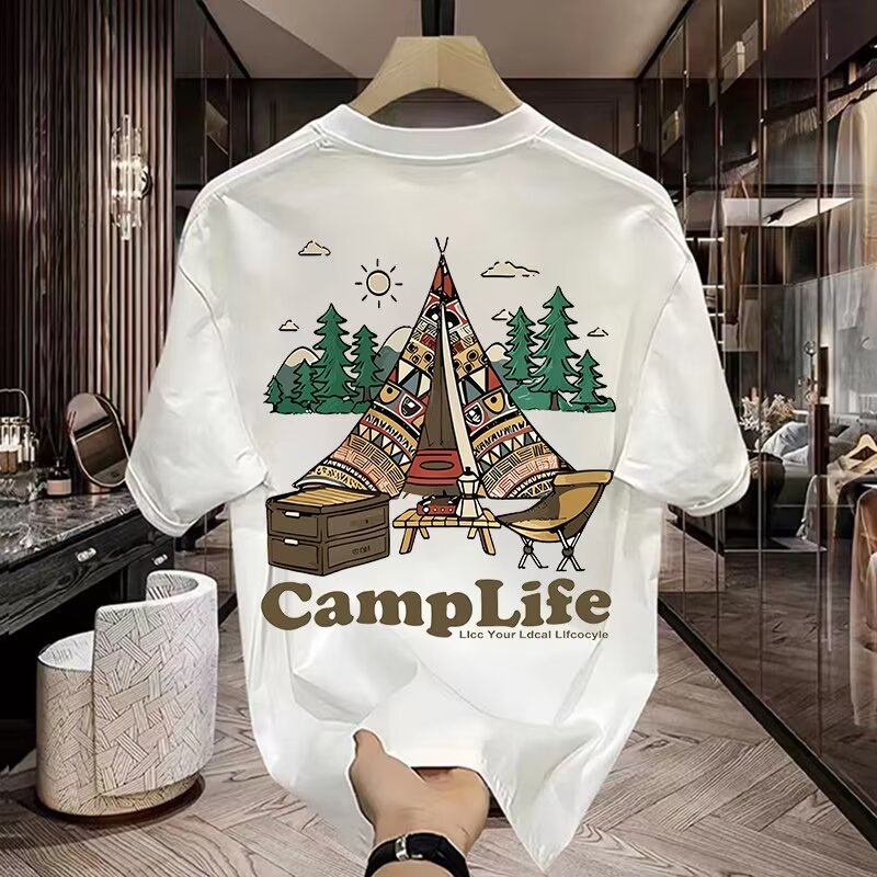 2025夏季冰丝速干短袖男士T恤民族风新款体恤潮流个性印花宽松衣