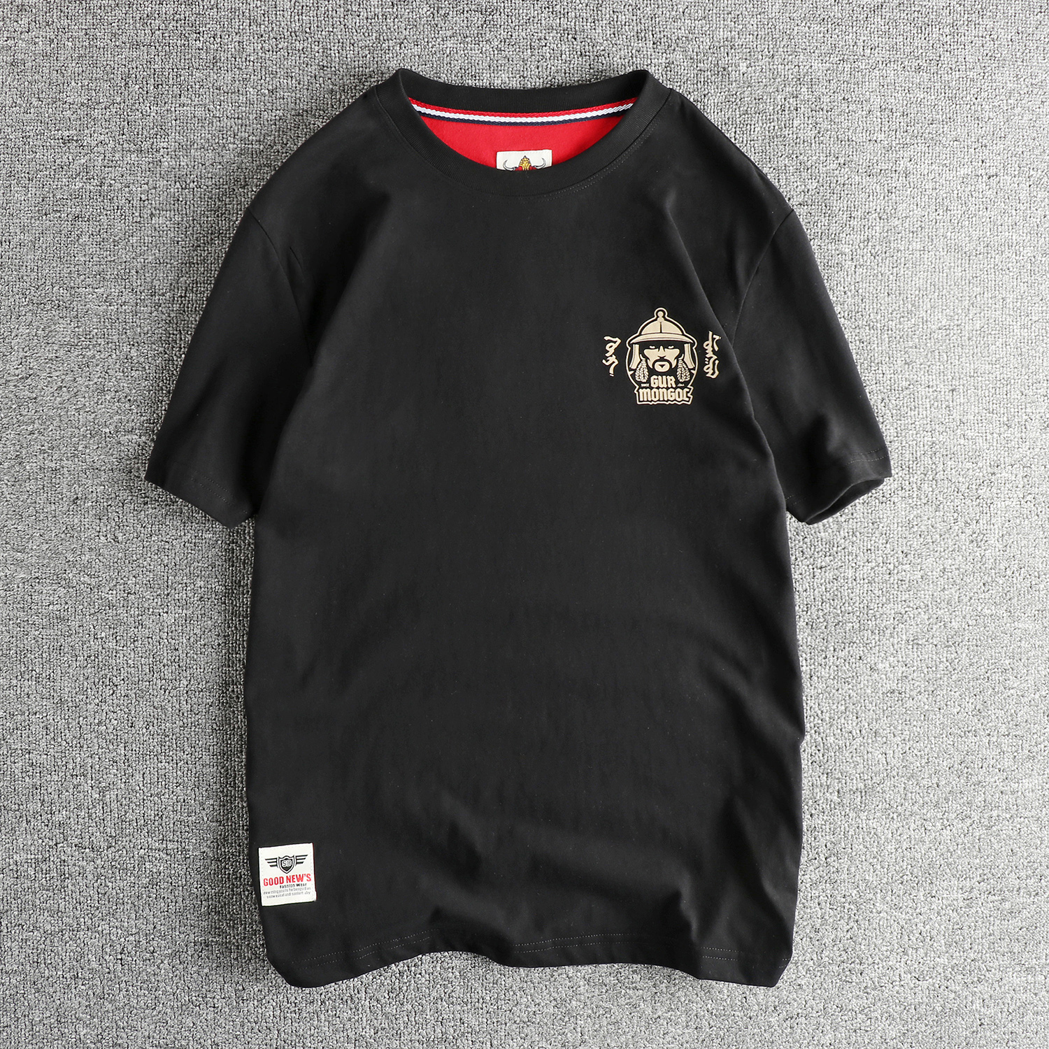 国潮复古民族风印花宽松上衣体恤夏季潮牌ins刺绣休闲男士短袖t恤