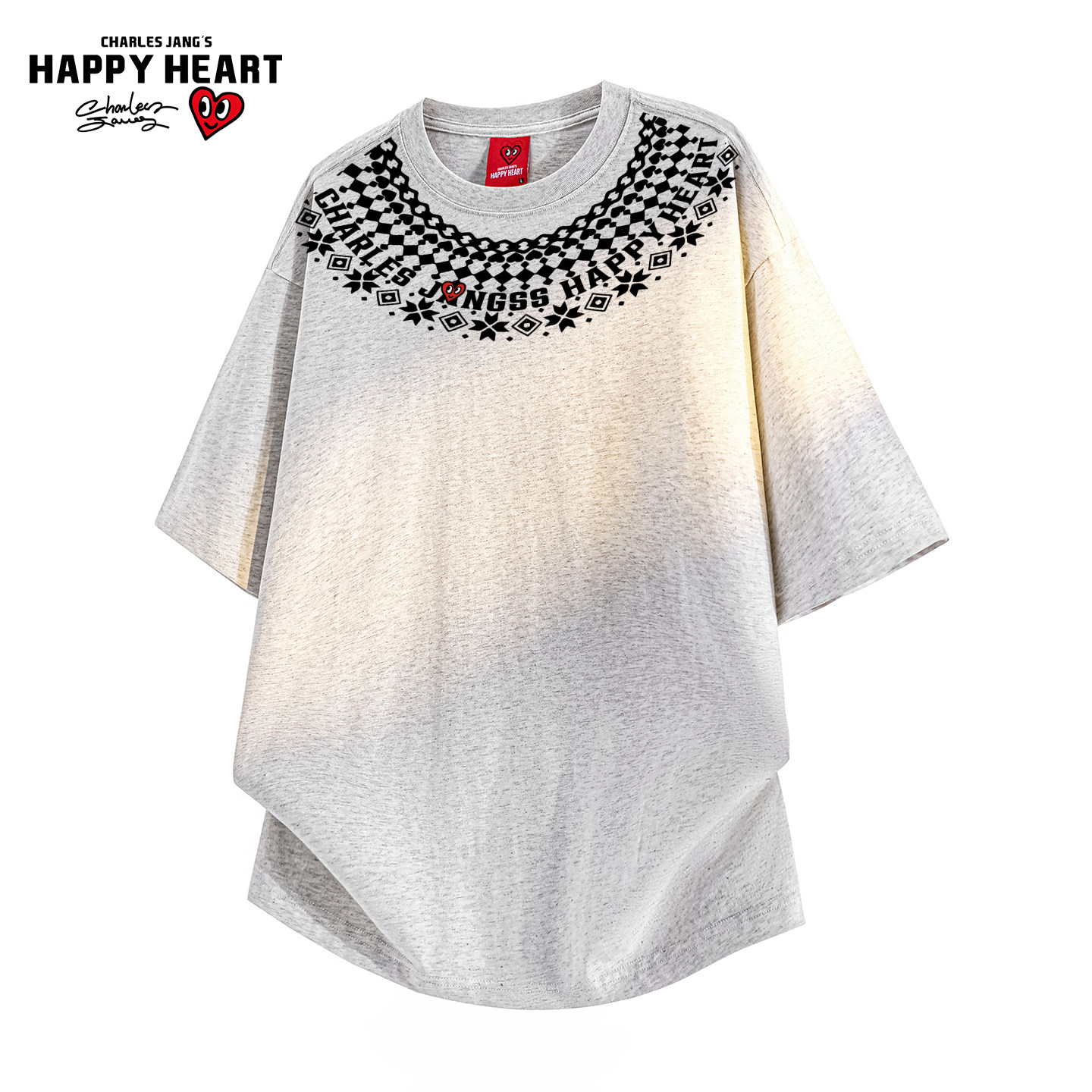查尔斯桃心 美式短袖t恤男费尔岛民族风项链印花纯棉夏季圆领上衣