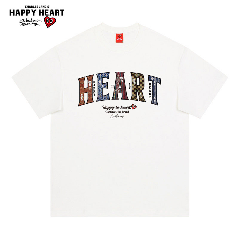 查尔斯桃心 珍珠民族风印花设计感短袖t恤男夏季新款纯棉圆领半袖