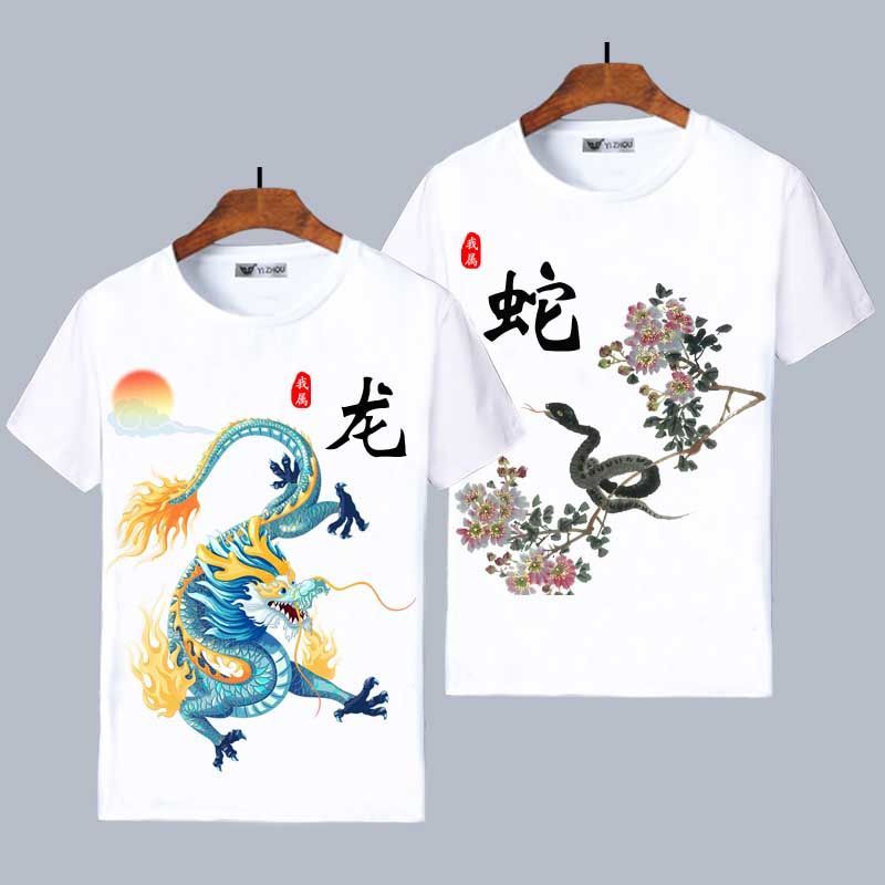2025新款T恤男女夏季中国风十二生肖印花短袖t恤民族风定制衣服潮