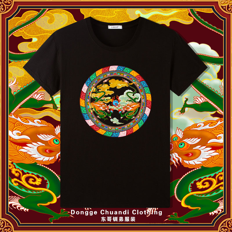 青龙双龙戏珠印花短袖中国风夏季新款男女同款民族纯棉T恤衣服潮