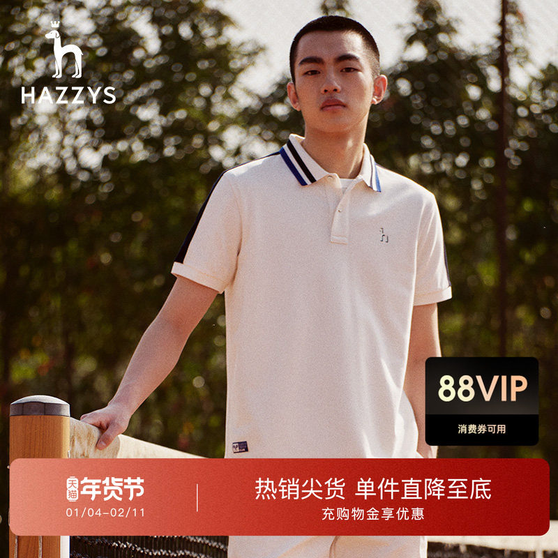 Hazzys哈吉斯夏季男士英伦风短袖polo衫时尚舒适休闲T恤男潮流男T