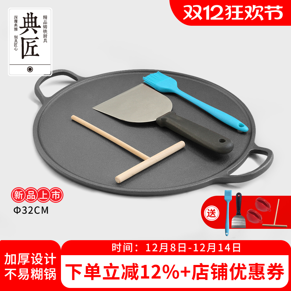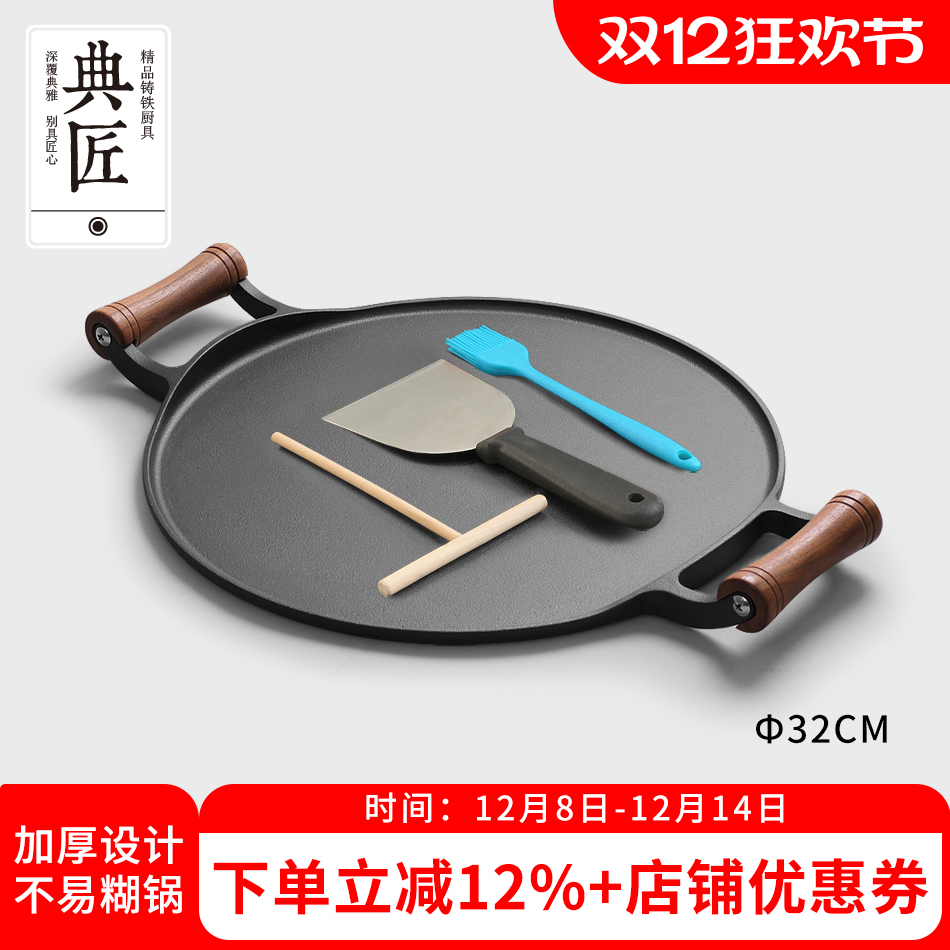 典匠煎饼锅铸铁煎饼鏊子家用加厚双耳烙饼锅摊煎饼平底锅燃气灶32