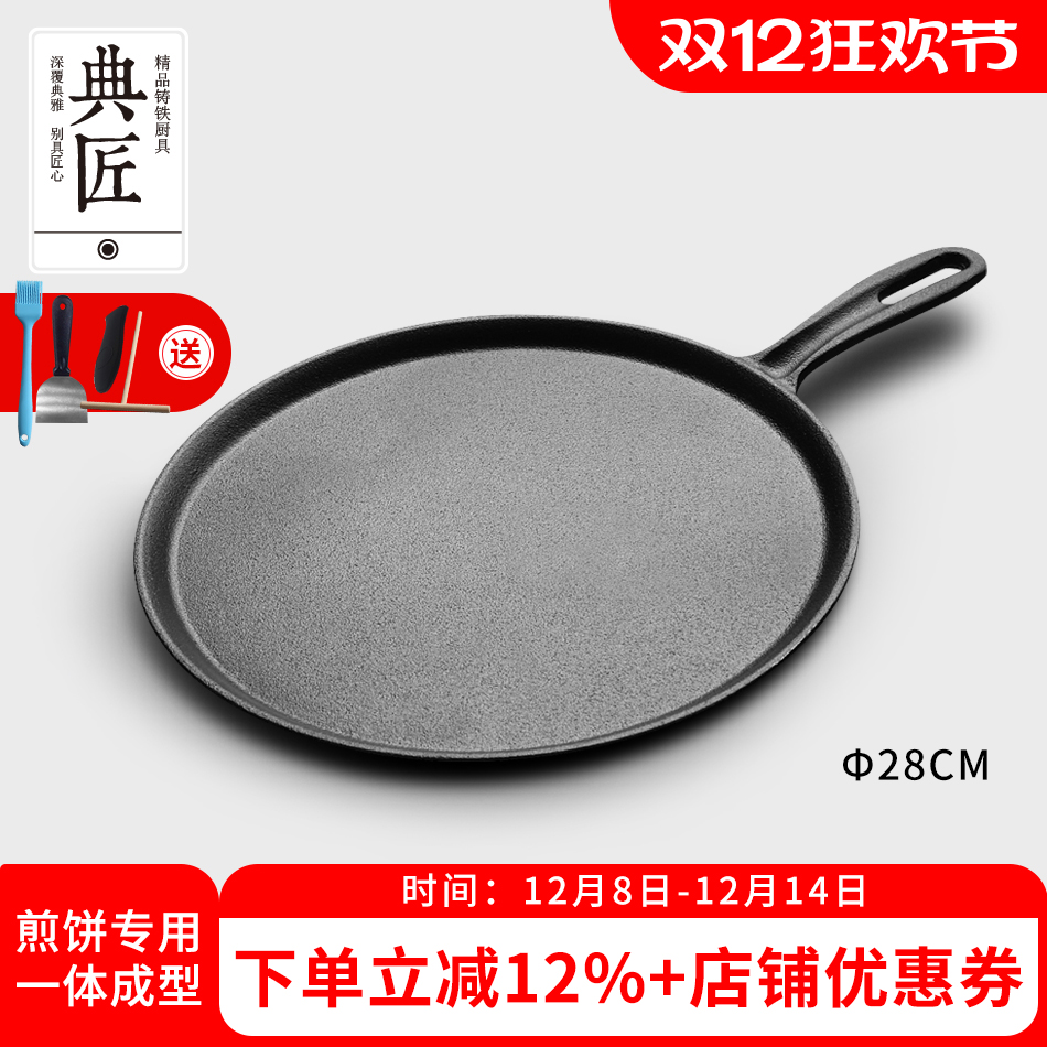 典匠铸铁煎饼锅鏊子28cm家用摊煎饼果子工具生铁煎锅烙饼锅平底锅