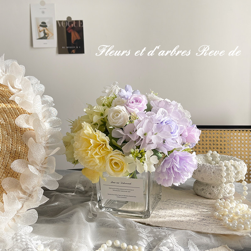 ins小清新绢花假花仿真花 客厅玻璃花瓶装饰品摆件餐桌花艺套装花
