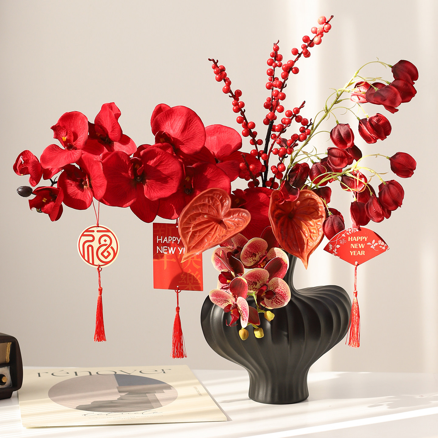 中式仿真蝴蝶兰花艺套装摆件创意客厅餐桌假花桌面小盆栽装饰摆设
