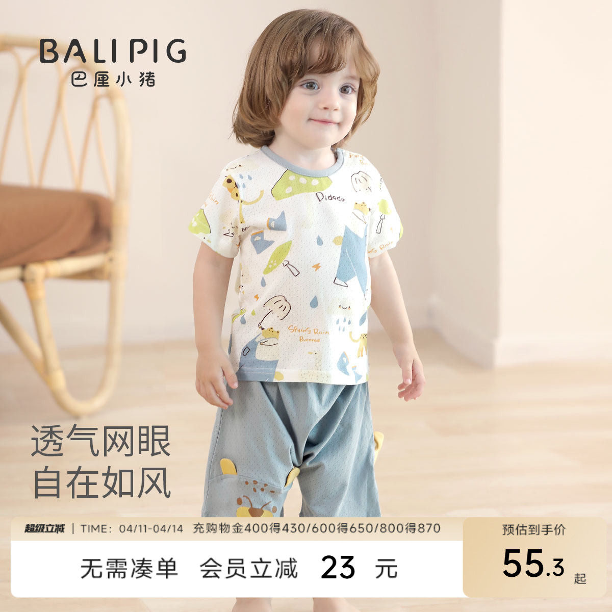 婴儿夏季套装儿童纯棉薄款中袖男童女空调分体夏装两件套宝宝衣服