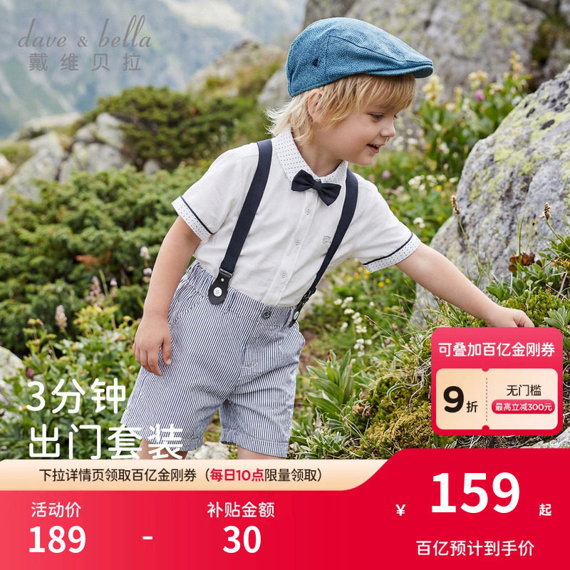 戴维贝拉男童夏装两件套儿童周岁演出礼服套装男孩衣服宝宝背带裤