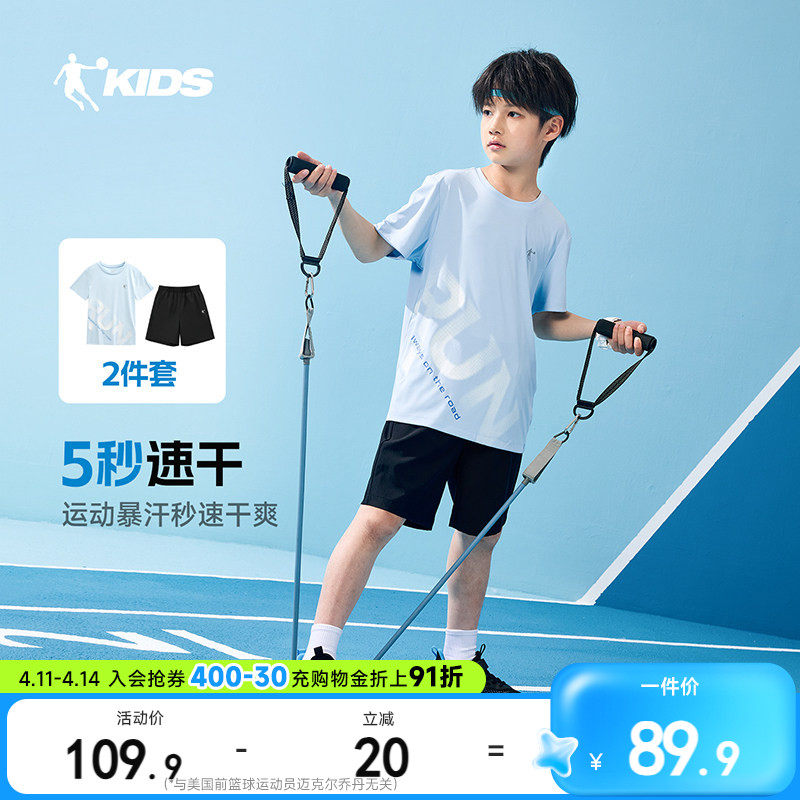 乔丹童装男童夏套装2026新款儿童短袖两件套冰丝速干透气薄款夏装