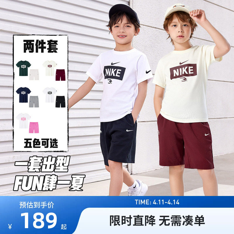 Nike 3brand儿童套装男童短袖T恤短裤五分裤子女童两件套运动夏装
