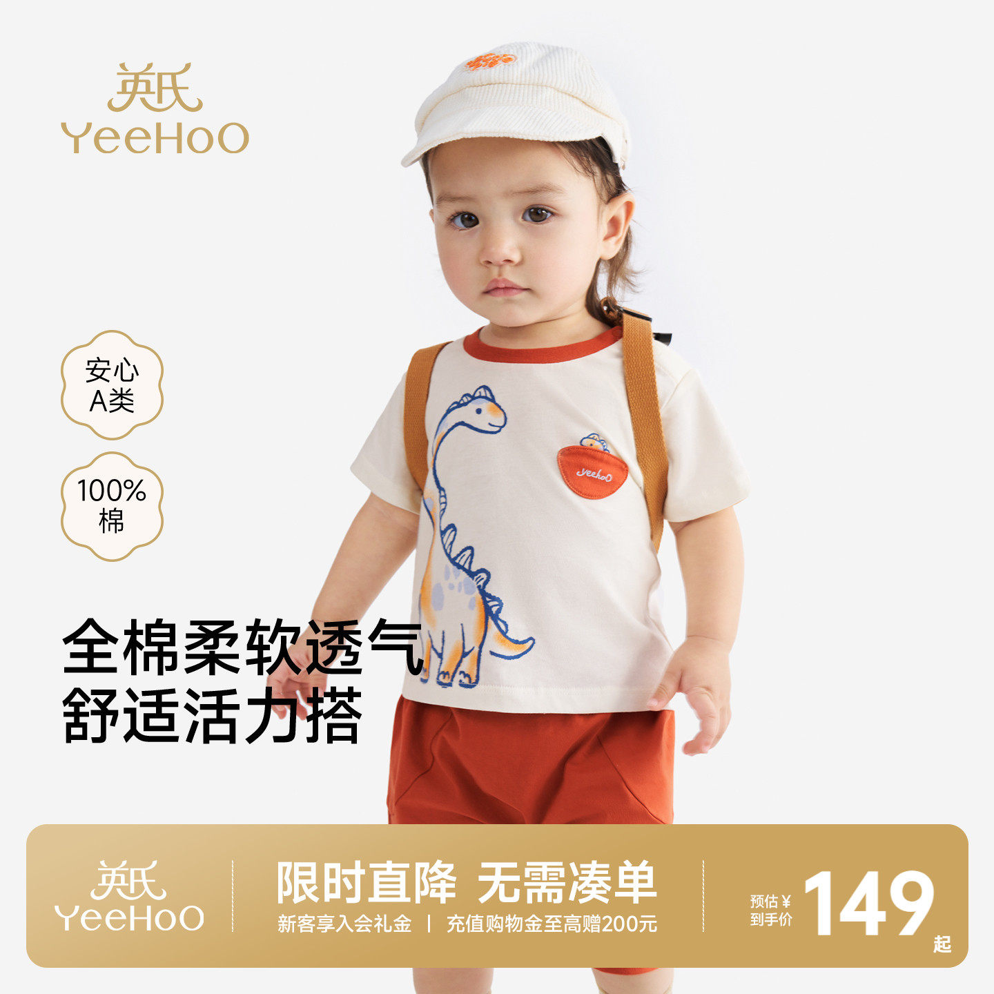 英氏宝宝夏季套装外出夏男童女童短袖短裤两件套纯棉透气夏装衣服