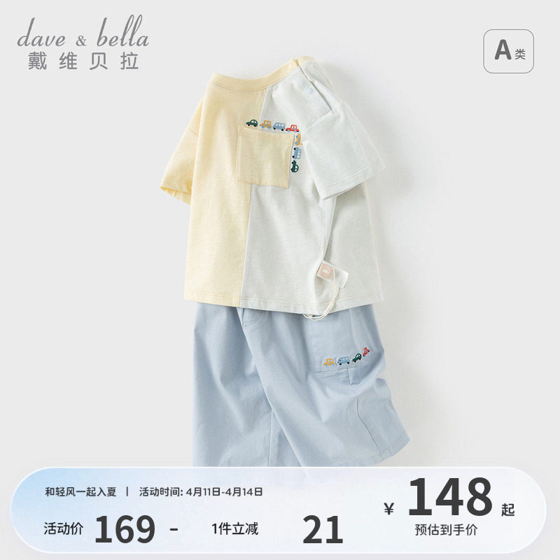 戴维贝拉儿童七分裤套装2026夏装男童休闲薄款短袖T恤裤子两件套