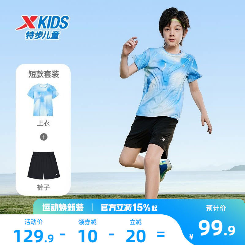 特步童装儿童短袖套装2026夏季男童夏装速干T恤短裤运动服两件套