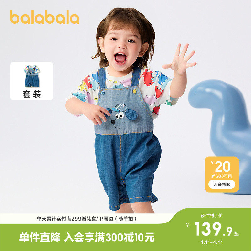 巴拉巴拉童装宝宝短袖套装夏装男童背带裤两件套2026休闲时尚百搭