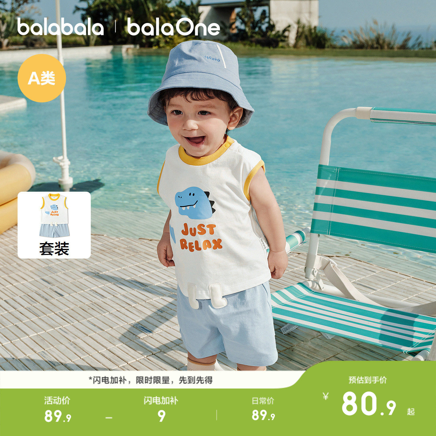 巴拉巴拉宝宝短袖t恤套装女童男童婴儿夏装2026新款背心两件套萌