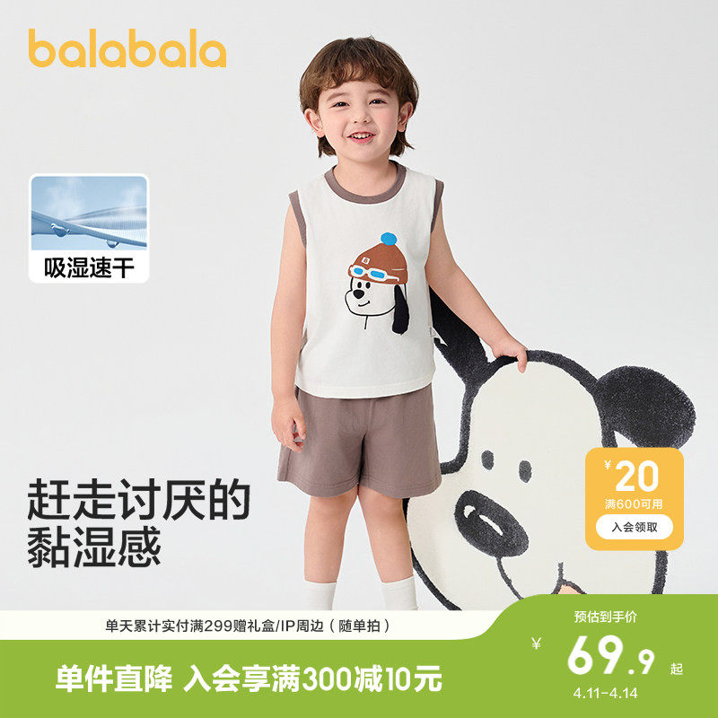 巴拉巴拉男童短袖套装儿童中大童两件套2026新款夏装速干舒适上衣