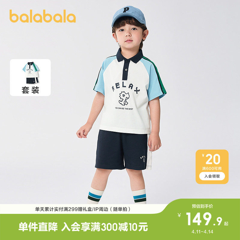 巴拉巴拉童装男童短袖套装儿童两件套宝宝衣服2026休闲夏装撞色潮