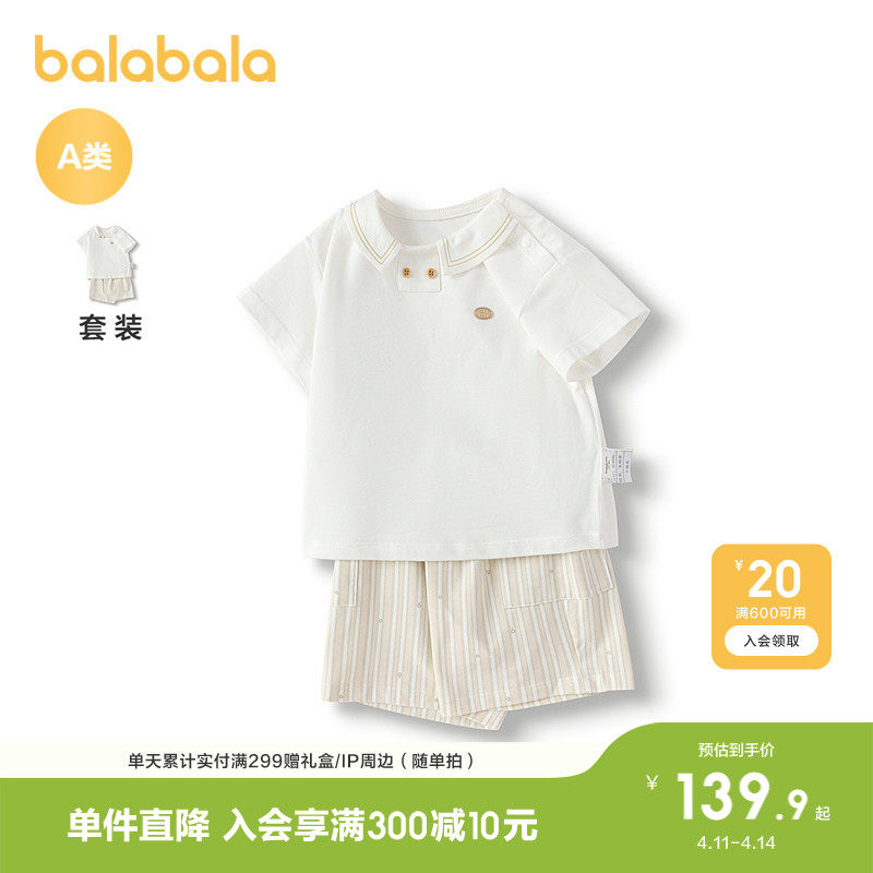 巴拉巴拉童装宝宝短袖t恤套装婴儿2026新款春夏装男童女童两件装