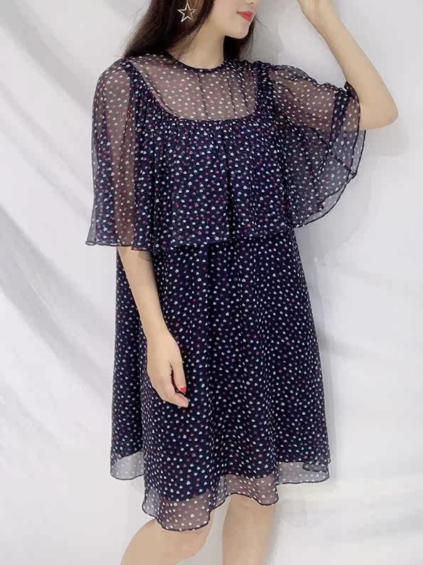 真丝连衣裙特价 夏季碎花桑蚕丝中袖大摆裙 飘逸宽松A字裙中裙女