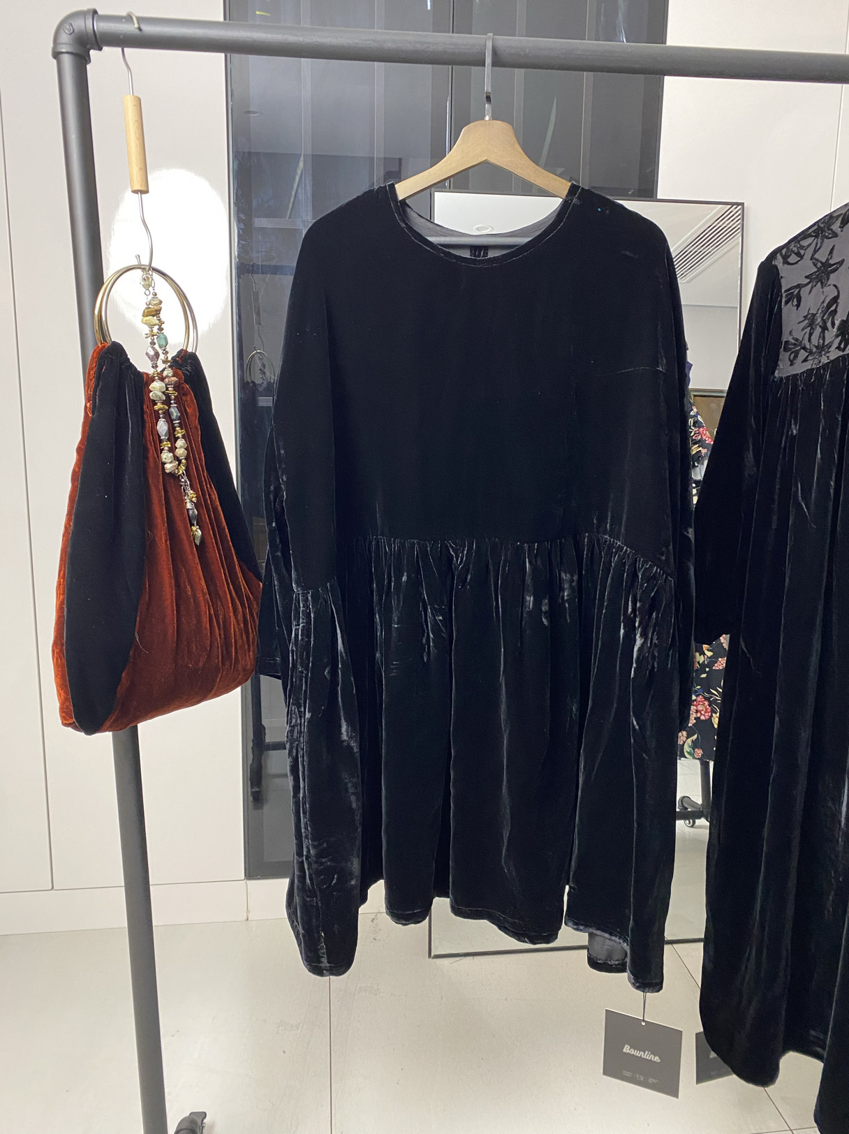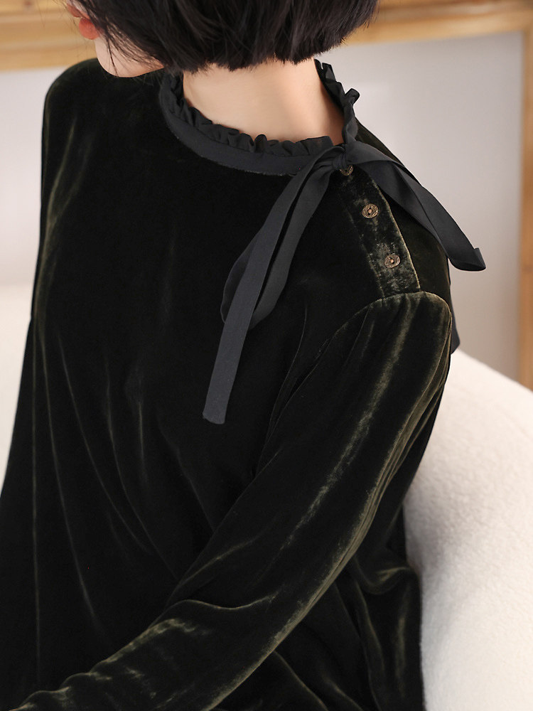 矜贵典范!法国柜款真丝丝绒 长袖宽松中裙气质高级连衣裙KAKA特