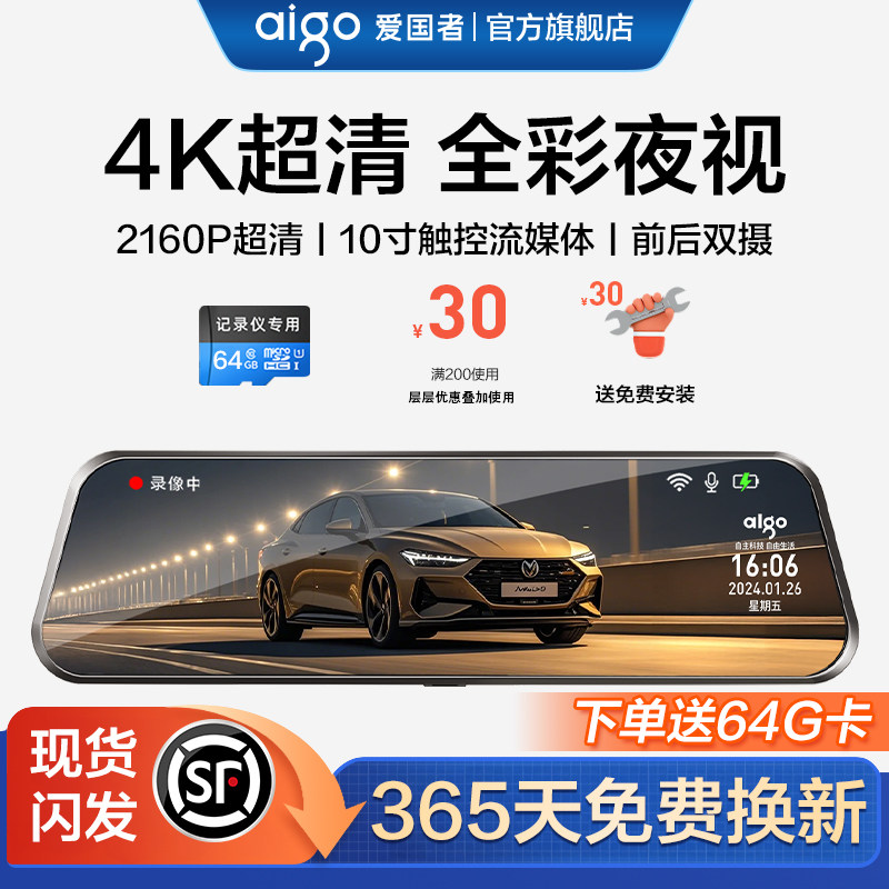 汽车行车记录仪2025新款倒车影像流媒体后视镜超高清前后双摄4K