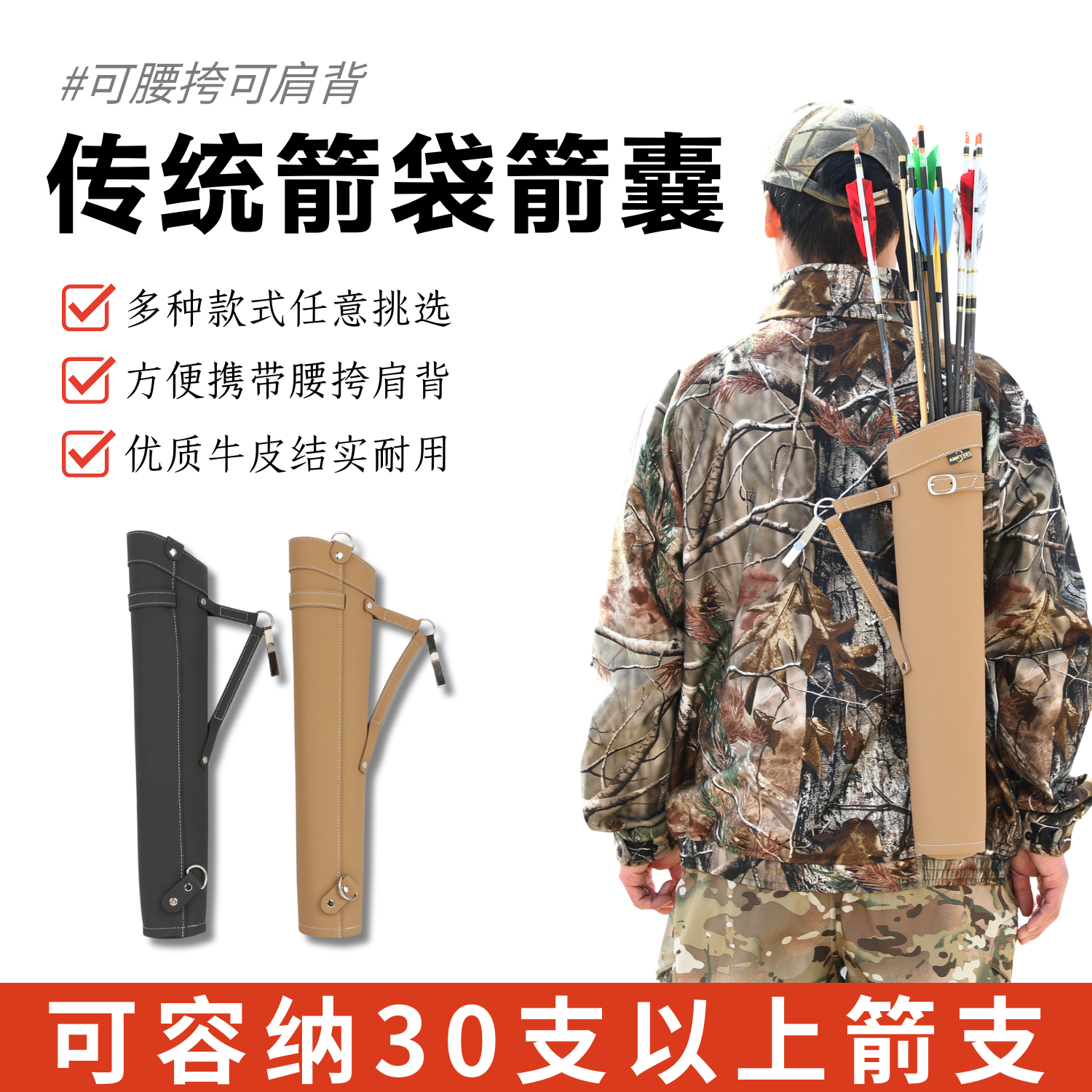 弓箭箭袋传统美猎反曲弓箭射箭器材户外大容量腰挂式箭筒复古箭囊