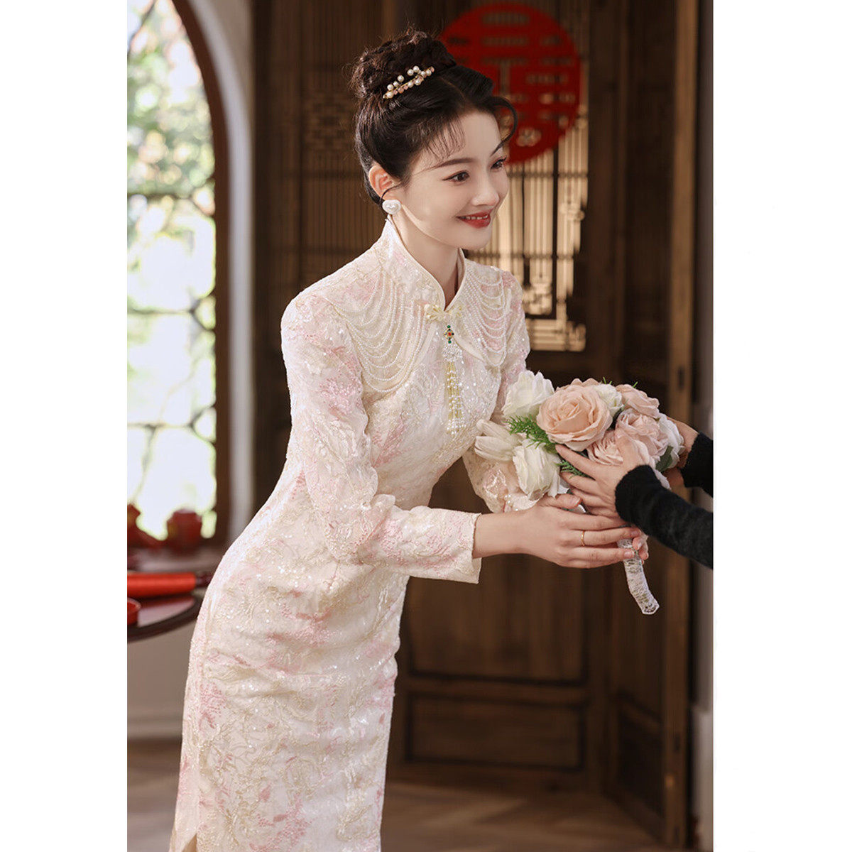 旗袍敬酒服结婚酒红色长袖中式改良年轻款订婚礼服回门服新娘冬季