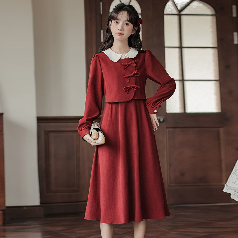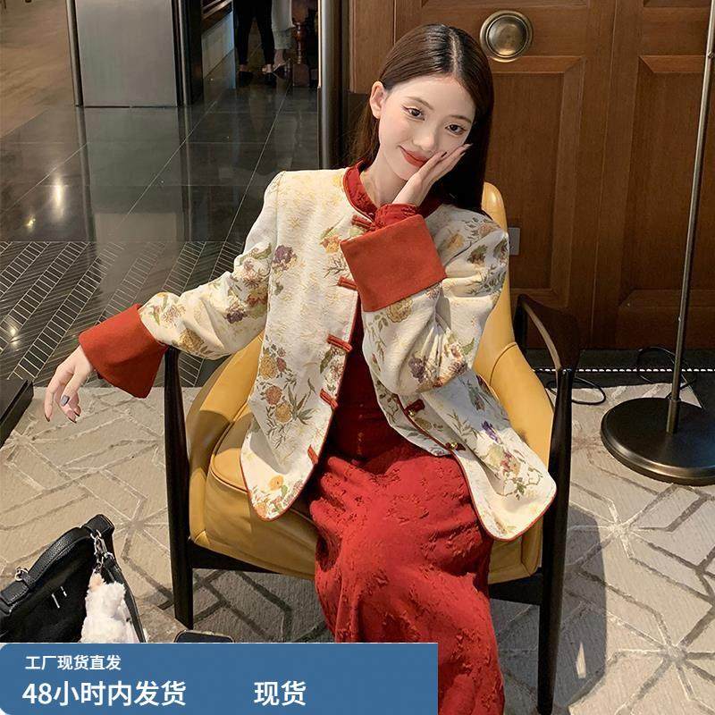 新中式订婚礼服红色旗袍裙外套套装秋冬敬酒平时穿回门服新娘便服